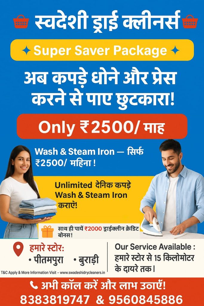 Dry Clean & Laundry chain with Online stores in Delhi /NCR trusted by more than 50000 customers.